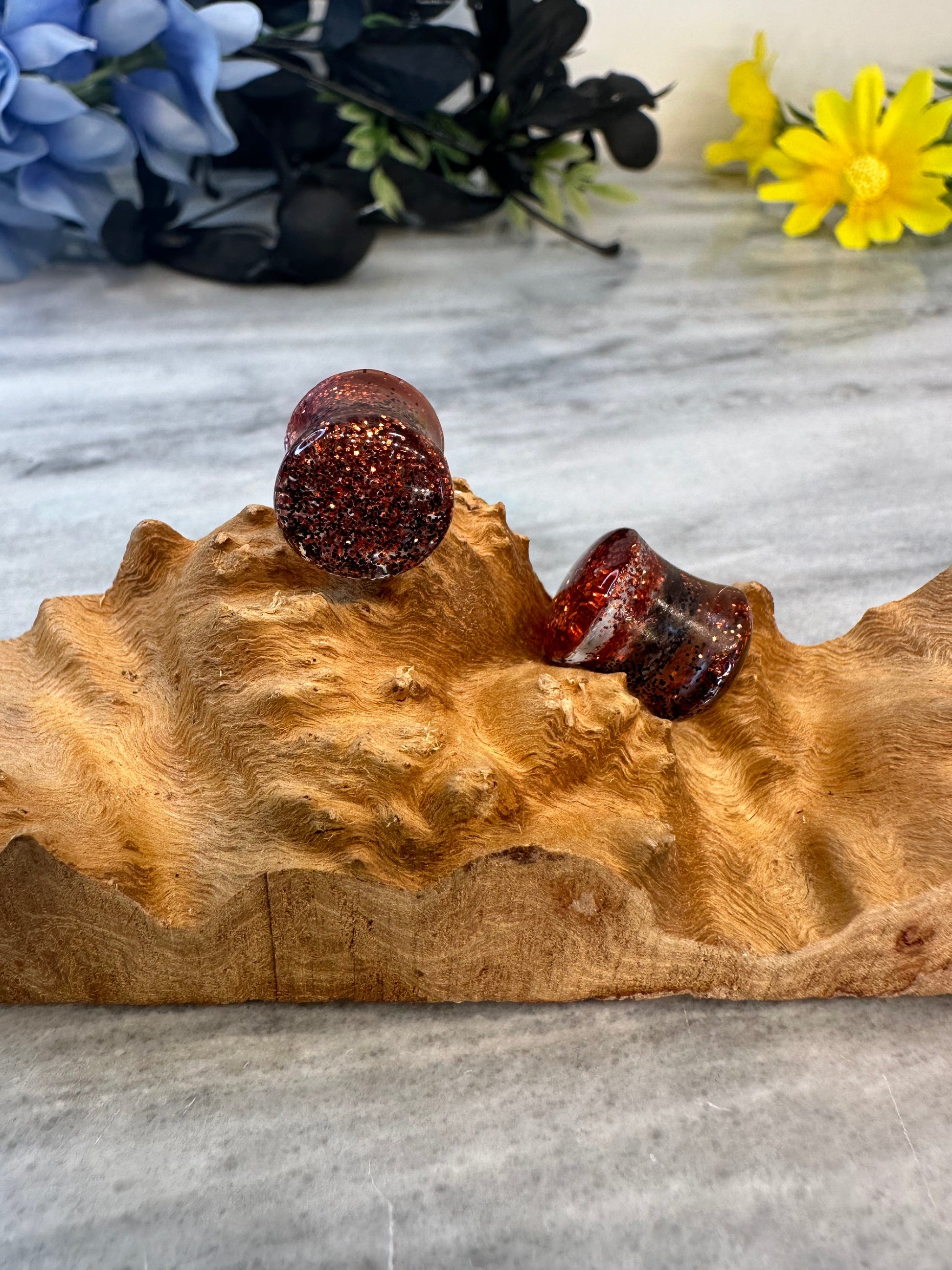 Double flare resin cast gauges/plugs.