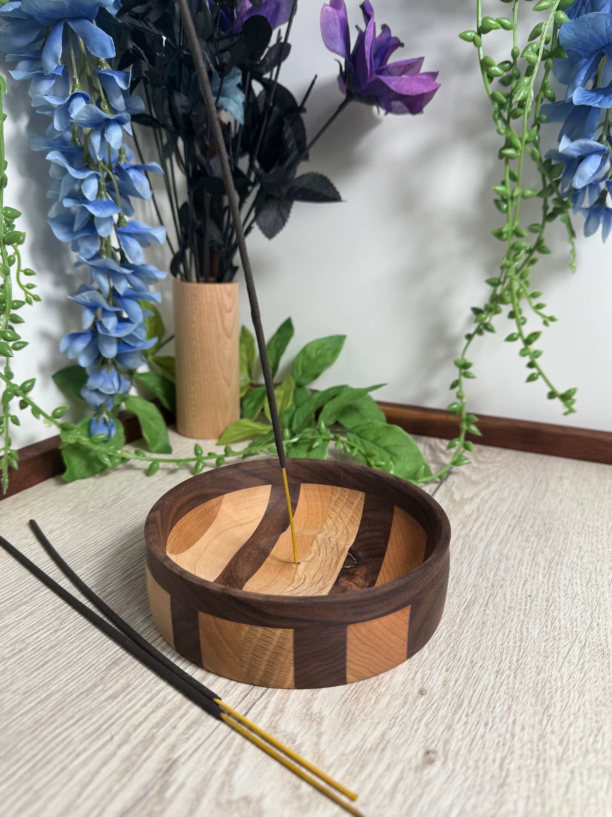 Handcrafted Multi Species Wood Incense Holder with Walnut Rim